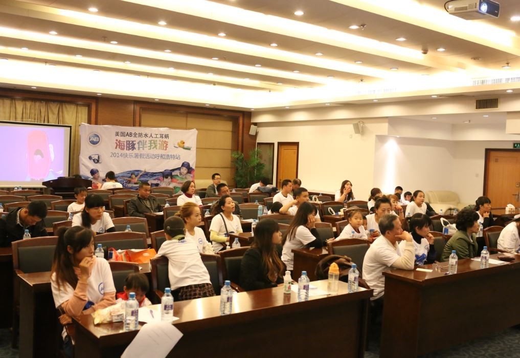 本次体验会由AB内蒙古区域总代理万科隆公司主办,邀请了内蒙古儿童听力诊断中心的齐颖教授,残联国家项目负责人李锦博主任,以及AB公司技术总监邬子犁先生,给大家讲解了耳聋及预防知识,地区政府对聋儿康复治疗的政策扶持,Neptune处理器以及美国耳蜗的特点等内容。图为齐教授讲授医学知识