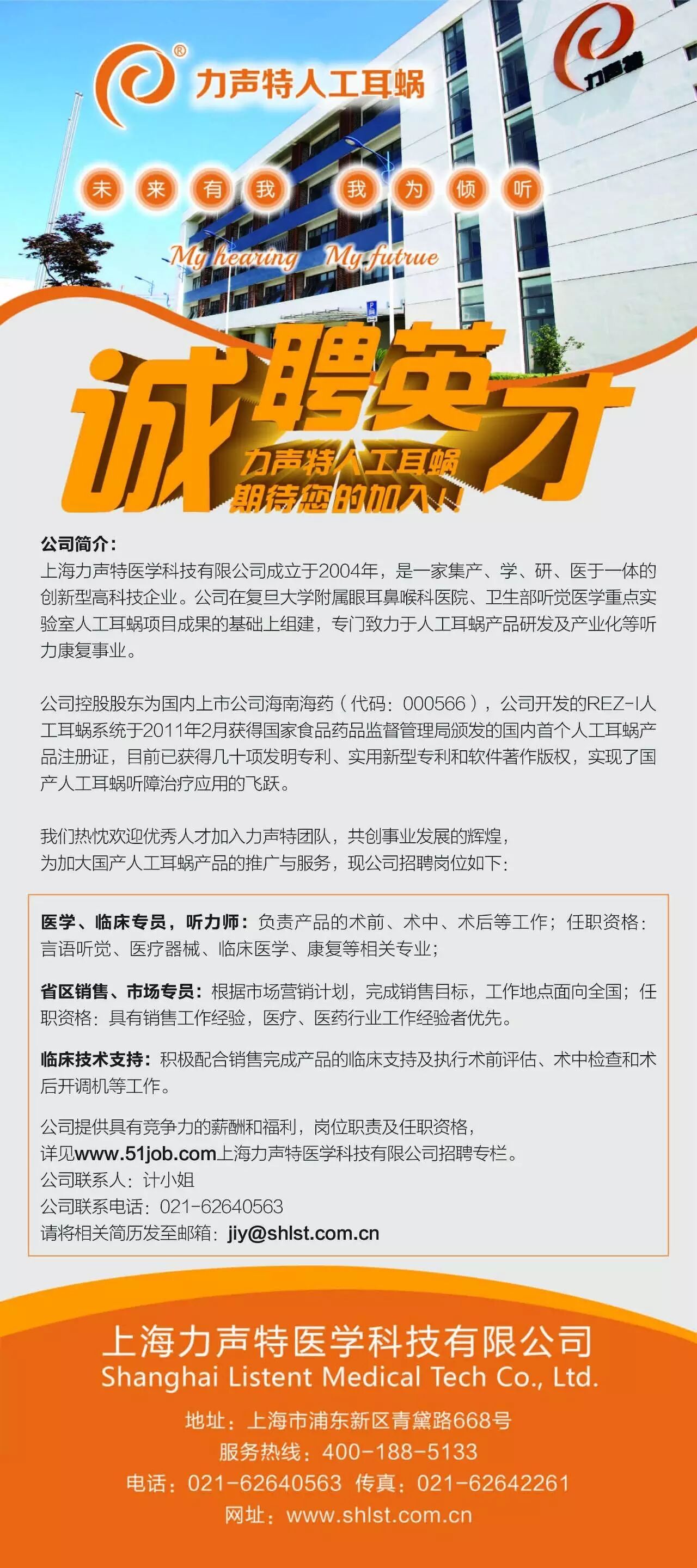 听力师?市场或销售?这里有份好工作在找你!力声特人工耳蜗招兵买马啦!