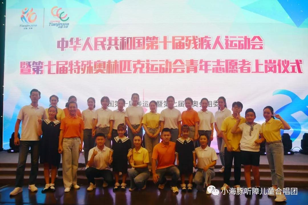 2019年8月18日,小海豚听障儿童合唱团的团员李可新、张玉成、孙娇和孙娆代表小海豚出席中华人民共和国第十届残疾人运动会暨第七届特殊奥林匹克运动会青年志愿者上岗仪式,与众多青年志愿者一起迎接残运会的到来。
