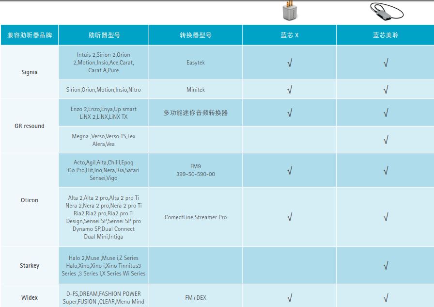通用型接收机包括蓝芯x和蓝芯美聆两种产品,它们即可用于助听器也可用于人工耳蜗: