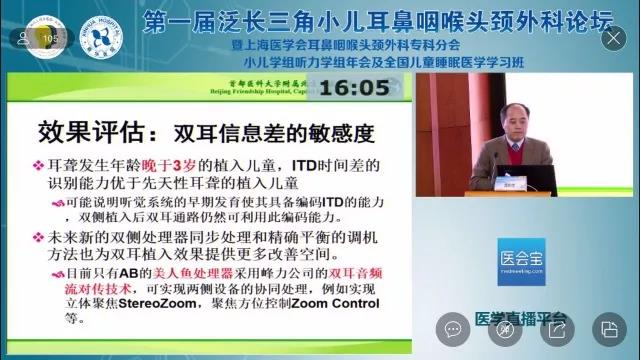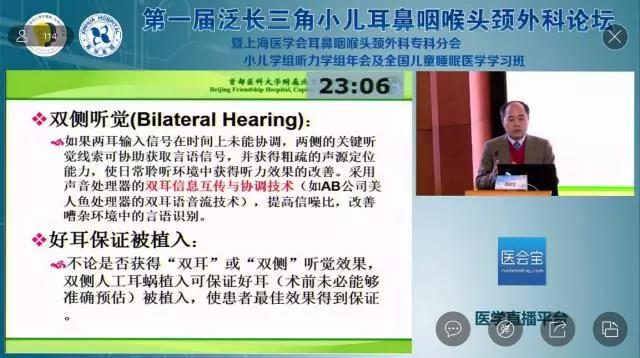 龚树生教授深入浅出的为学员讲述了双耳植入效果评估,通过引入最新国际研究文献,为学员展示了常规要求下双侧植入的双耳聆听,不仅在安静环境有效果提升,尤其噪声环境下效果提升明显,文字展示了目前顶级双耳聆听技术-双耳语音流互传技术,能有效提升噪声环境聆听效果,为患者实现术后接近正常人耳聆听提供了最强技术支持。
