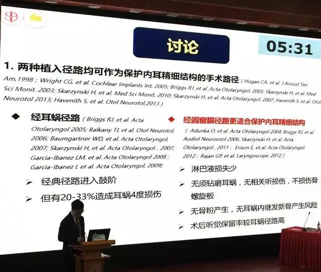 张治华教授展示了低龄儿童双侧植入手术视频实例,其中提及美国AB耳蜗最新植入体MS电极(鼓阶中间电极),演示展示了这款电极能够完美实现保护耳蜗精细结构的圆窗手术。张治华教授还提到了:中间电极是一款既不是抱轴,也不是靠外侧壁,而是在中间的电极,它不会损伤蜗轴、外壁和基底膜,是一款比较好用的保护内耳结构的电极。