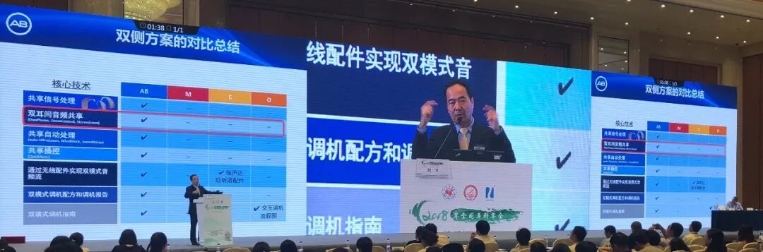 下午的人工听觉分会场上,美国耳蜗大中华区总经理刘飞博士携AB新品Naida美人鱼处理器亮相美国耳蜗专场卫星会,就热点话题《双模式的最新应用进展》向与会专家进行了生动地分享。